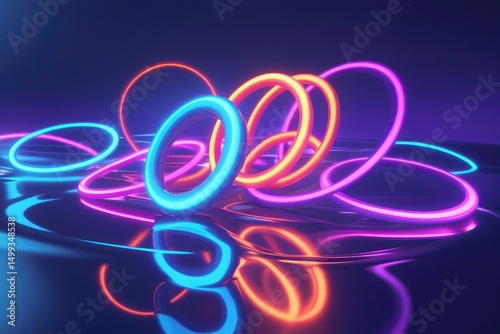 Neon Rings Abstract 3D Art Glowing Circles Cyberpunk Background