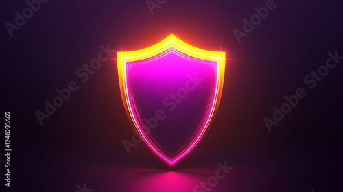 Neon Shield Icon with Bright Colorful Glow on Dark Background for Security and Protection Concepts