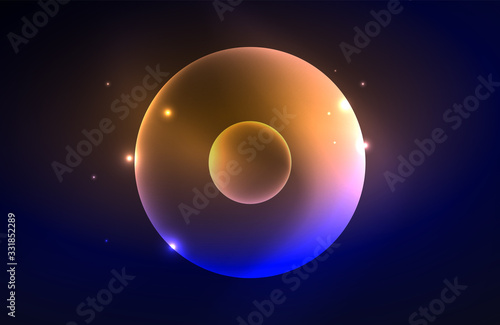 Neon shiny transparent glowing circles with light effects. Techno futuristic vector abstract background For Wallpaper, Banner, Background, Card, Book Illustration, landing page