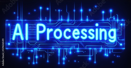 Neon sign ai processing microchip electric blue signals glowing energy grid bright colorful realistic photo