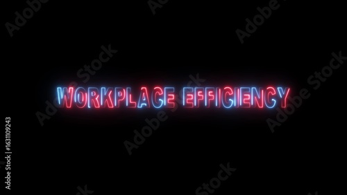 Neon Sign Workplace Efficiency Text in Red and Blue Glowing Against Black Background