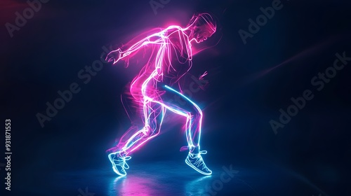 Neon Silhouette of Expressive Dancing Figure in Motion Against Dark Backdrop