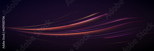 Neon speed lines. Dynamic light motion traces. Light trace wave, trace line.