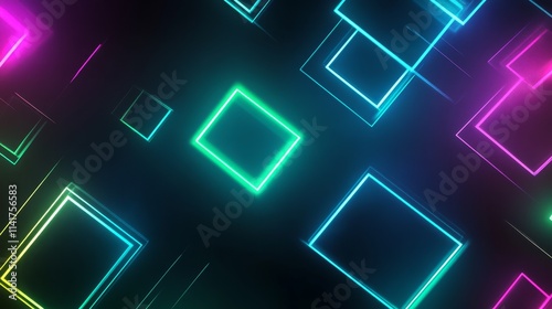 Neon squares pattern with glowing lights, vibrant geometric shapes, colorful abstract design, futuristic background