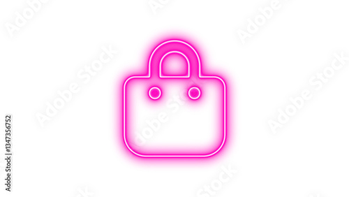 Neon symbol bag shopping icon pink color glow with transparent background