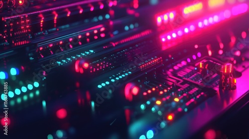 Neon Synthwave Control Panel: Futuristic Technology and Cyberpunk Aesthetics