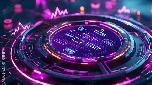 neon tech hud interface futuristic design - cyberpunk aesthetics
