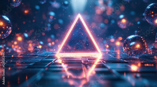 Neon Triangle Frame Encompasses Glittering Cosmic Scene