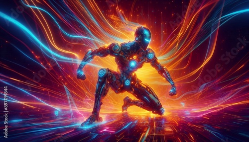 Neon Vanguard: A Cybernetic Warrior in the Digital Abyss
