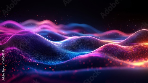 neon waves shift through surreal dynamic digital landscapes., Generative AI