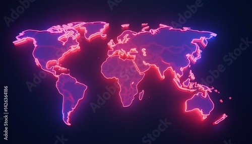 Neon World Map: A Glowing Representation of Global Connectivity