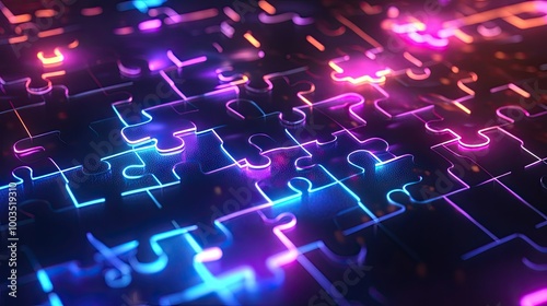 Neon-colored puzzle pieces merging on a glowing digital display, representing smooth API integration