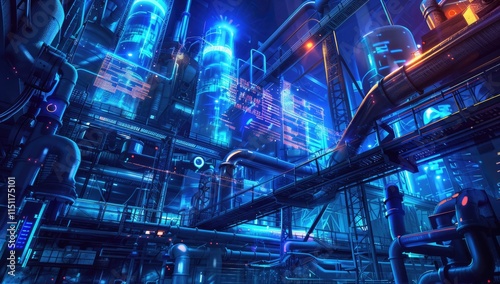 Neon-lit Futuristic Industrial Plant Showcasing Automation Technology Integration in Modern Business Operations