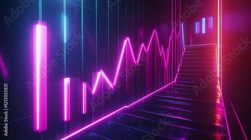 Neon-toned digital bar graph displaying financial growth on a modern background