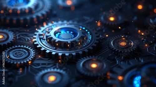 network cog abstract symbol in center, stock photo design neural networks, reliability, machine learning, academia, research, background stock photo, website photo, high quality