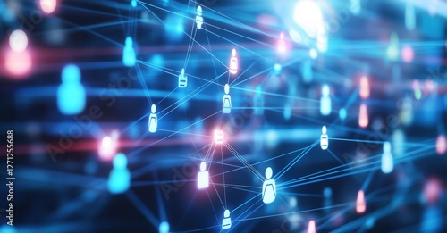 Network connection depicted through glowing figures, symbolizing digital relationships and interconnected systems.