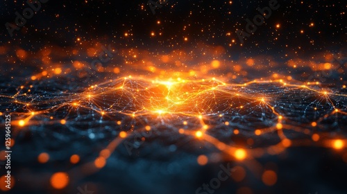 Network connection, glowing nodes, abstract background, technology concept