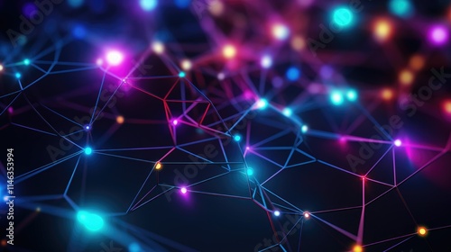 Network connection lines with bright nodes