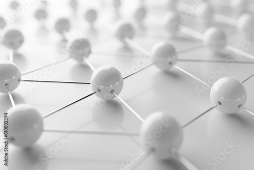 Network connection structure with white spheres on light background. Medical backdrop. Technology wallpaper