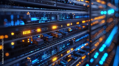 Network Engineer Cloud Server VM Cloud data infrastructure with linked VM instances glowing, tech integration, 3D illustration