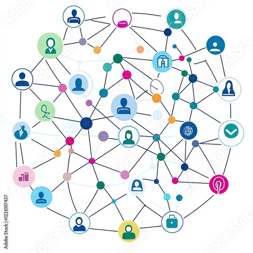 Network graph showing interconnected nodes representing people and data.