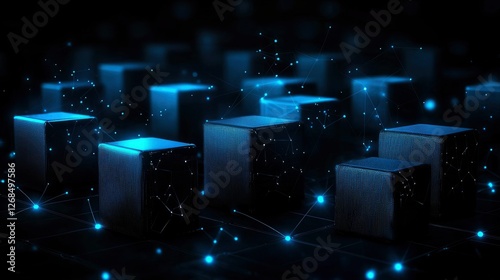 Network of Interconnected Dark Cubes with Glowing Nodes - Abstract Technology Background