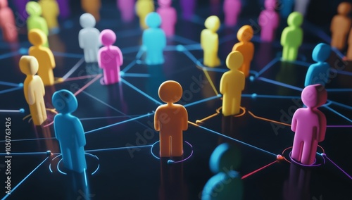 Network of Interconnected Pawns with Glowing Colors Representing Different Social Connections and Hoops Symbolizing Digital Networks