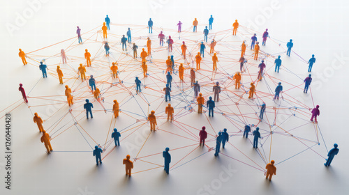 network of vibrant nodes interconnected by lines, representing social connections and relationships. colorful figures symbolize diversity and collaboration in digital landscape