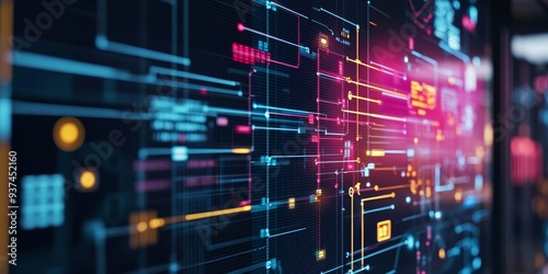 network topology diagrams displayed on a screen, showcasing the intricate setup of a corporate network