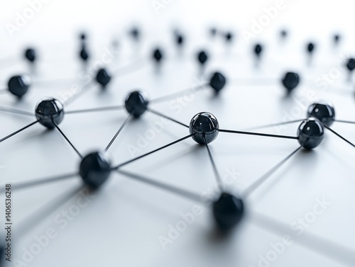 Networked System of Shiny Black Spheres: Interconnected Nodes and Lines Forming a Modern Abstract Connection and Communication Design