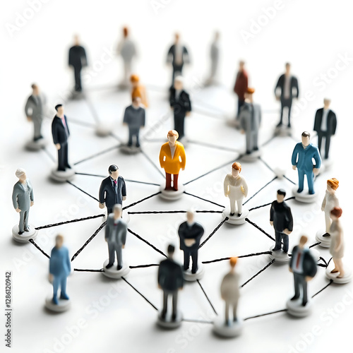 Networking concept with miniature figures of people interconnected by lines in a dynamic layout