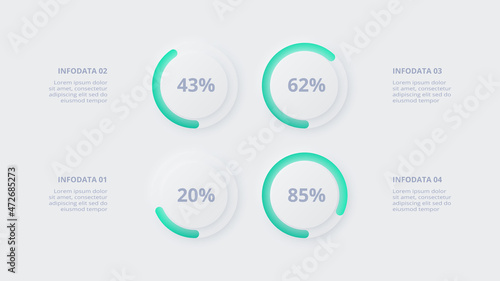Neumorphic flow chart infographic. Creative concept for infographic with 4 steps, options, parts or processes.