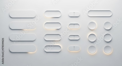 Neumorphic style ui elements isolated on white background
