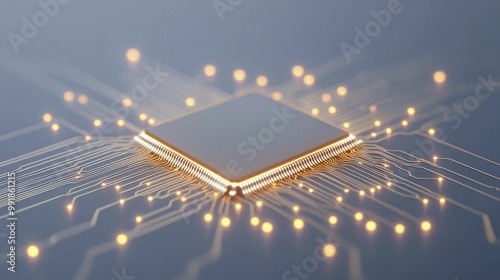 Neural Computing Hardware, specialized chips tailored for neural network processing, displayed on a textured gray backdrop, 3D rendering.