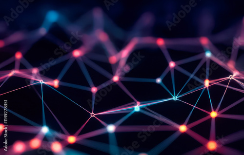 Neural Links Network Abstract background wire pattern with neon glowing lights