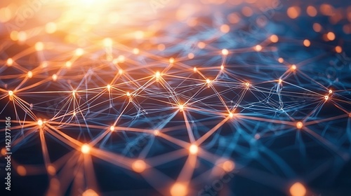 Neuroscience brain neurotechnology research Abstract network of interconnected lines and glowing dots.