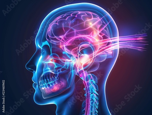 Neuroscience insights human brain anatomy illustration digital art scientific exploration abstract environment side view