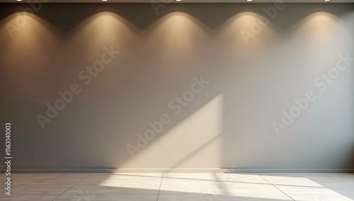 Neutral Interior Wall With Recessed Ceiling Lights Creating Warm Illumination And Natural Light Casting Subtle Shadows Across Smooth Surface