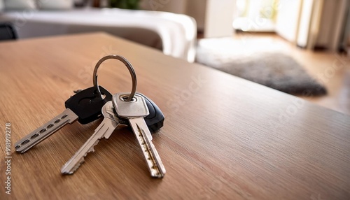 New Beginnings: Keys on the Table in a Freshly Arrived Apartment or Hotel Room"