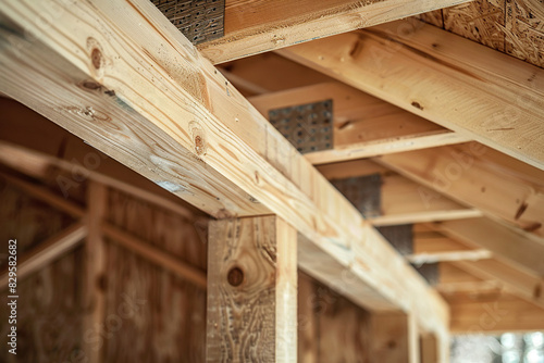 New house construction, close-up of a wooden ceiling frame. Generated by artificial intelligence