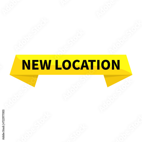 New Location Text In Yellow Rectangle Ribbon Shape For Information Announcement Business Marketing Social Media