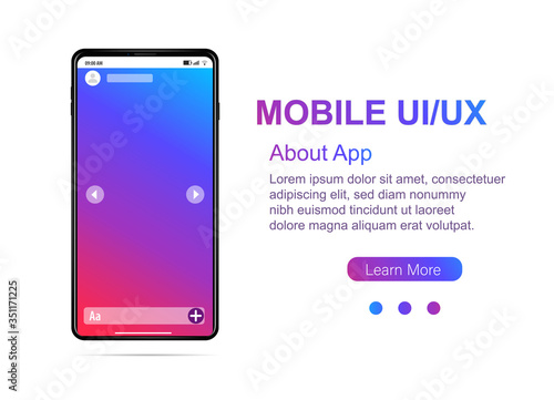 New mockup Smartphone сoncept swipe interface in social network concept. Bright gradient on the screen. Made in 3D Realistic style. Easy to edit. Suitable for template infographics presentation Vector