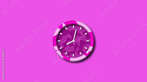 New pink 3d wall clock isolated on pink background,clock icon,3d wall clock