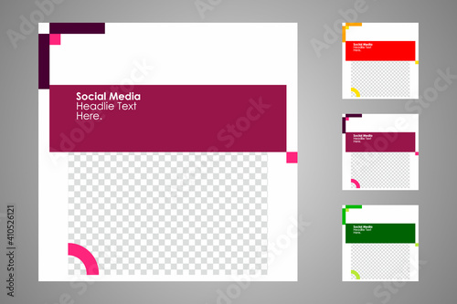 New set of editable minimal banner templates. Suitable for social media posts and web or internet ads with a choice of three different colors. Vector illustration with photo college.