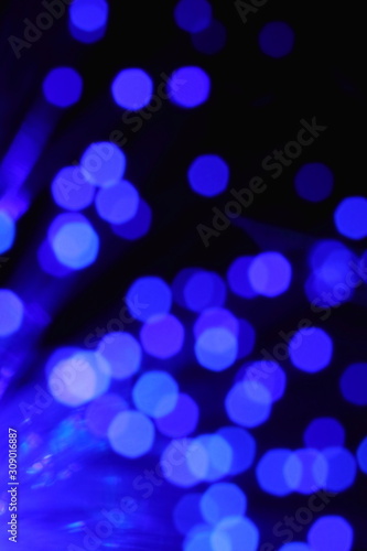 New Year and Christmas color illumination. The illusion of a salute explosion. The quirks of light fiber optic lamp. Blurry circles, bokeh on a dark background. Big explosion.