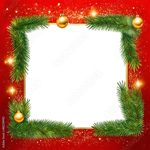 New Year, Christmas, background with fir branches and sparkles, red green and gold color, frame for text, greetings. Generative AI