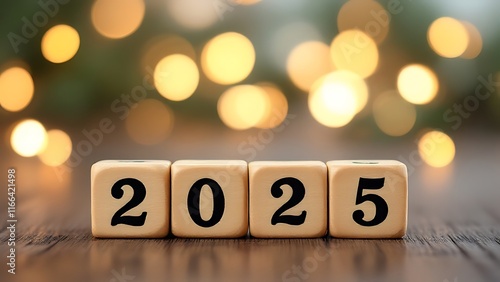 New Year Goals 2025. Flipping numbers 2024 to 2025 on a wooden block cube on a light bokeh background for preparation for the New Year change holiday. Happy New Year 2025.new Year's Eve Celebration.