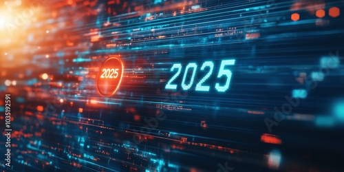 New year loading progress bar 2025 on digital lcd display, new year concept background