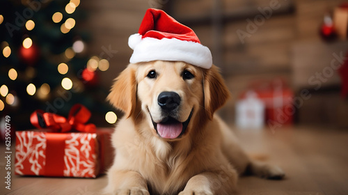 New Year's dog in Santa Claus's header festive background new high -quality universal colorful technology stock illustration design of illustrations, Generative AI