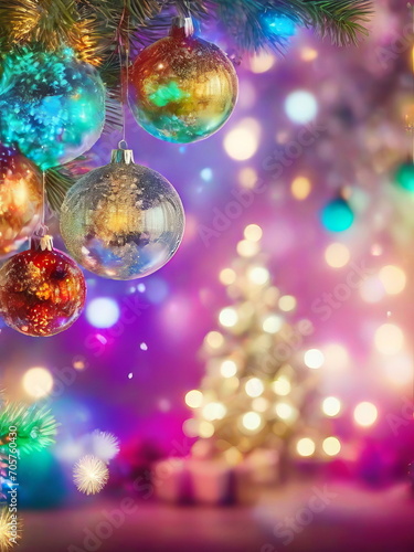 New Year's snowflake, Christmas tree toy, blurred background of multi-colored lights. New Year's festive atmosphere.